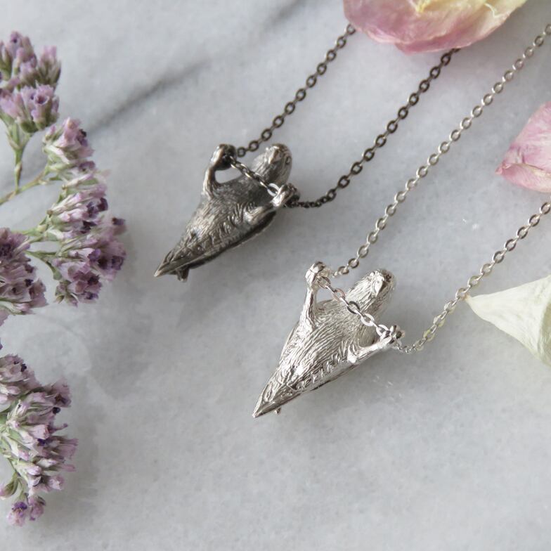 サザナミインコがチェーンにぶら下がって遊んでいるペンダント。