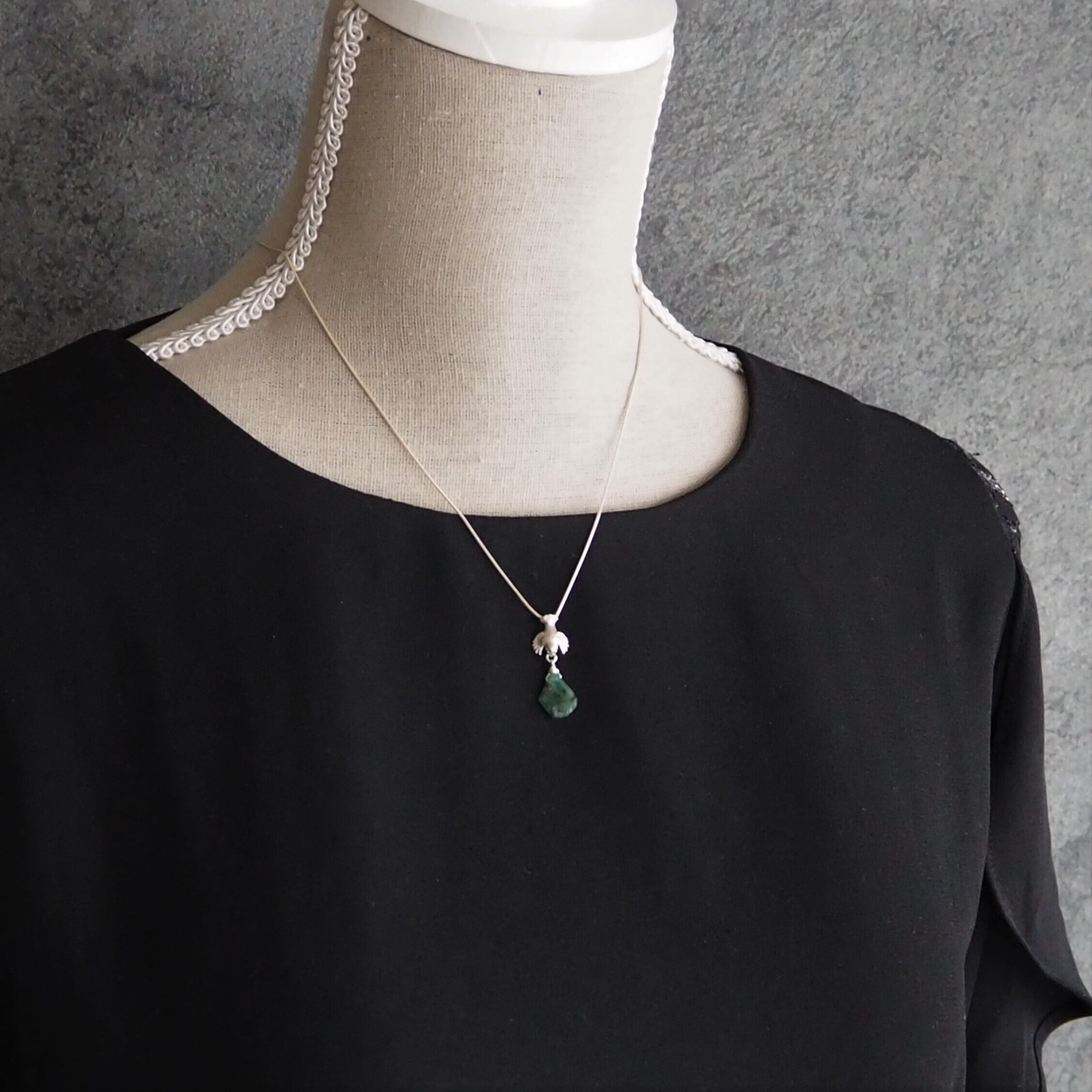 【送料無料】スズメとエメラルドのペンダント
